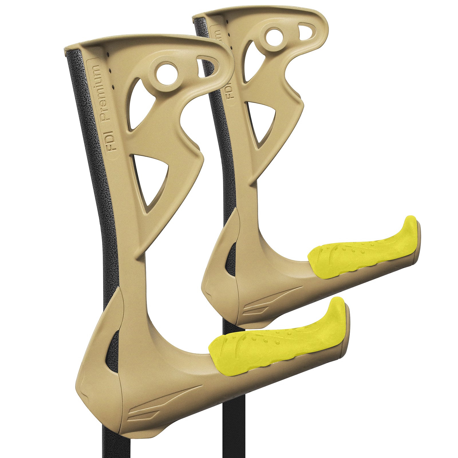 - The FDI Premium Crutches as standard come with non-slip double layered premium soft forearm protection and handle grips as well as shock absorbing anti-slip feet
